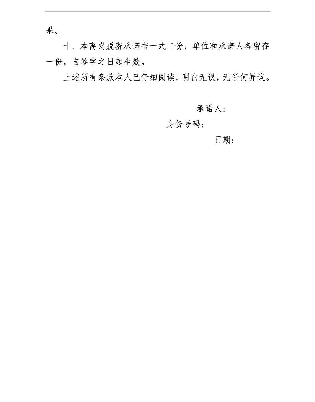 离岗离职涉密人员保密承诺书